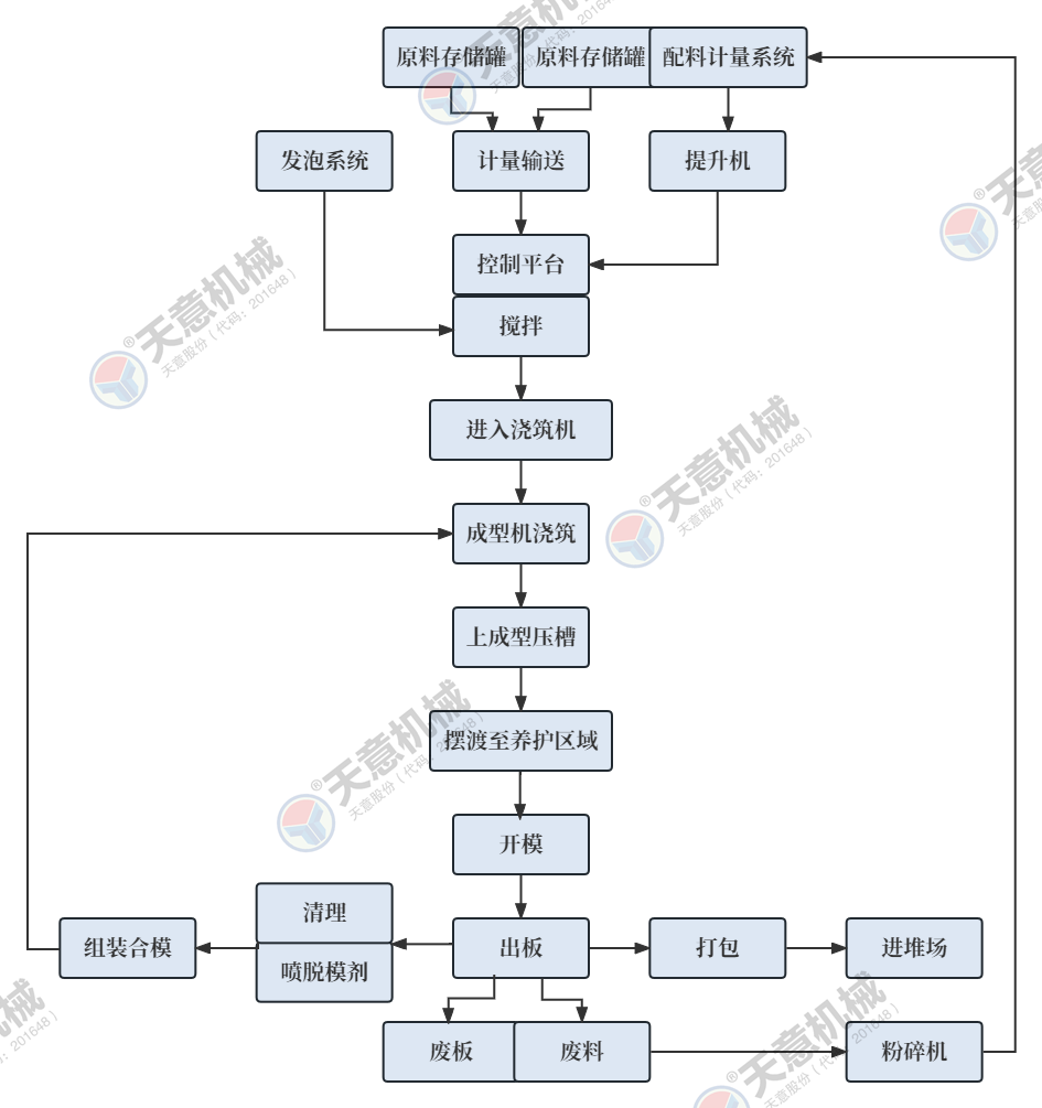 該復(fù)合墻板生產(chǎn)線采用立式旋轉(zhuǎn)臥式出板復(fù)合墻板成型機(jī),一次可生產(chǎn)四十塊墻板,該生產(chǎn)線主要分為:配料攪拌系統(tǒng)、墻板成型系統(tǒng)、液壓整體開模系統(tǒng)、液壓翻轉(zhuǎn)系統(tǒng)、整體出板翻轉(zhuǎn)碼垛系統(tǒng)、成型機(jī)自動(dòng)循環(huán)系統(tǒng)、變頻擺渡系統(tǒng)、數(shù)控配電系統(tǒng)等部件 組成。該生產(chǎn)線自動(dòng)化程度高,液壓開合模,解決了傳統(tǒng)立式復(fù)合墻板機(jī)人工開合安全隱患,提高了工作效率。設(shè)備配有整體出板碼垛系統(tǒng),解決了傳統(tǒng)人工出板方式,減少產(chǎn)品的破損率,提高了產(chǎn)能。生產(chǎn)線使用密封式泵送系統(tǒng)配備雙工位注漿槍,注漿速度快密實(shí)度高,材料粘結(jié)更緊密。