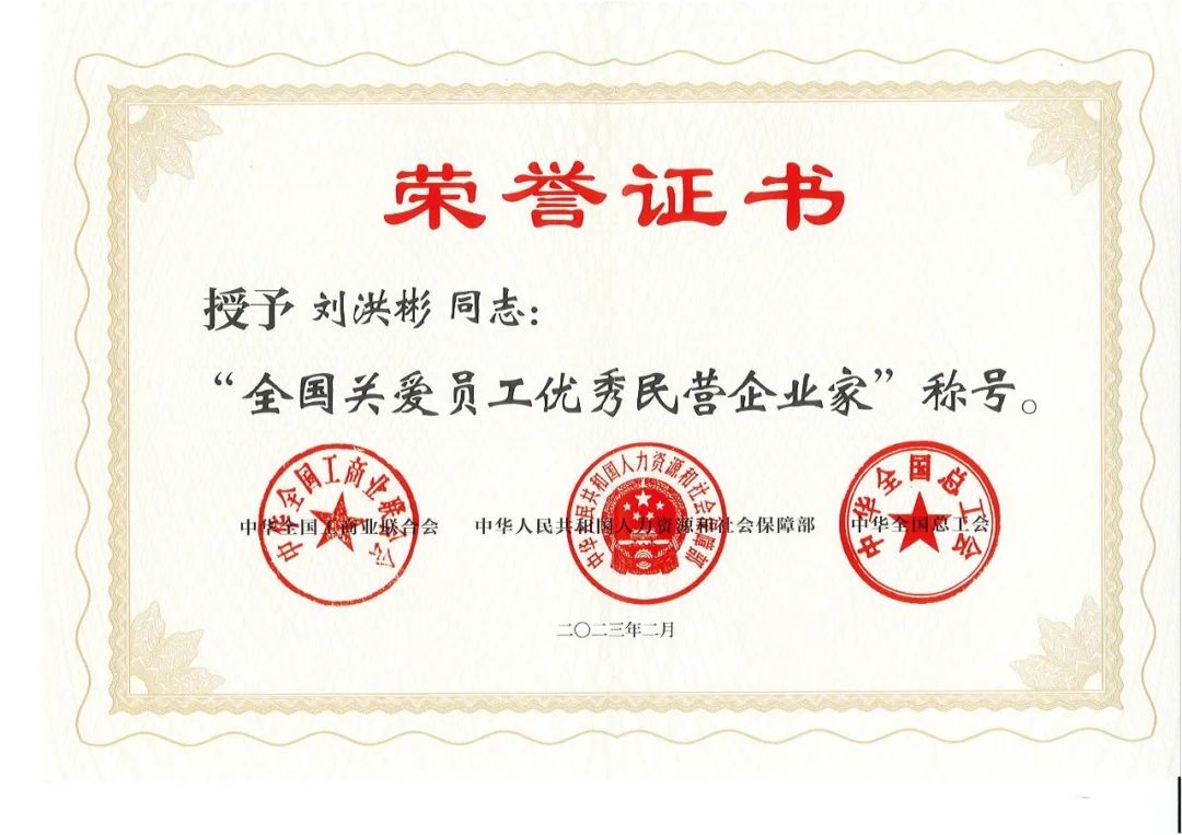 劉洪彬董事長在山東分會場參會并受到表彰,獲得全國關(guān)愛員工優(yōu)秀民營企業(yè)家稱號。