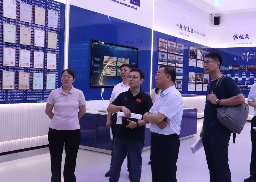 調研組先后參觀了天意機械智能化生產(chǎn)車間及卓越精工創(chuàng)新技術展示區(qū),詳細了解企業(yè)在裝配式建筑裝備、綠色建材產(chǎn)品等領域的技術突破與市場應用。天意機械董事長劉洪彬重點介紹了公司在“雙碳”目標下的技術布局,包括工業(yè)固廢資源化利用、智能化生產(chǎn)線研發(fā)等成果,獲得調研組高度評價。