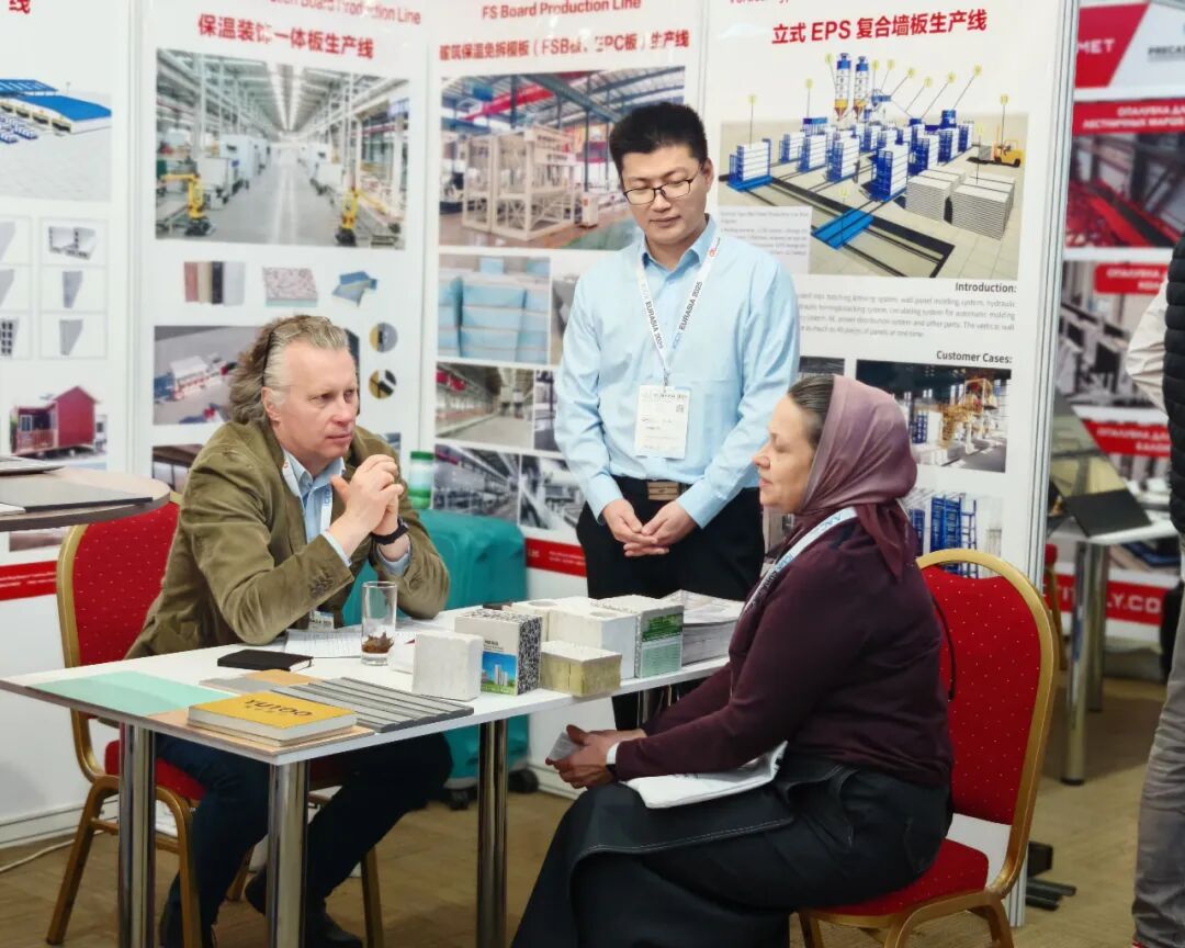 在裝配式建筑裝備方面,天意集團(tuán)展示了PC生產(chǎn)線、墻板裝備和保溫裝飾一體板生產(chǎn)線。PC生產(chǎn)線自動(dòng)化流程設(shè)計(jì),減少人工依賴,契合當(dāng)?shù)貏趧?dòng)力技能水平不一的現(xiàn)狀,有助于提升施工穩(wěn)定性;墻板裝備實(shí)現(xiàn)工業(yè)廢渣再利用,降低建材成本,符合環(huán)保政策要求;保溫裝飾一體板生產(chǎn)線可生產(chǎn)集多種功能于一體的新型墻體材料,采用模塊化設(shè)計(jì),能根據(jù)客戶需求靈活配置不同飾面工藝,滿足中亞地區(qū)多樣化建筑風(fēng)格需求。