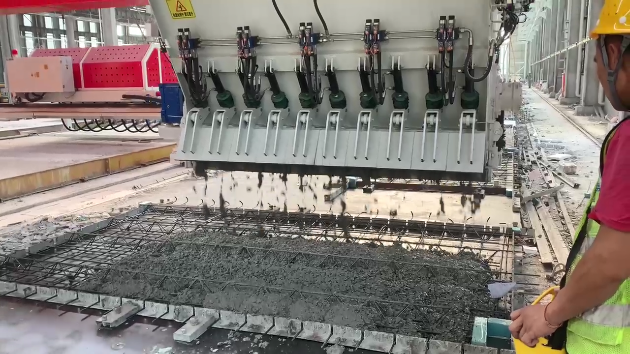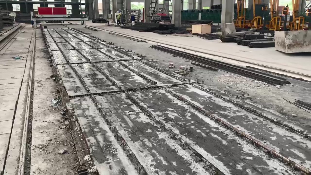 預(yù)應(yīng)力長線臺構(gòu)件生產(chǎn)線,每一道工序都經(jīng)過精心設(shè)計和優(yōu)化。經(jīng)過精密計算的預(yù)應(yīng)力鋼筋,被精確地放置在長線臺上,每一根鋼筋的位置和角度都經(jīng)過嚴(yán)格的控制,以確保構(gòu)件的受力均衡和穩(wěn)定性。